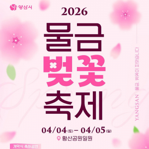 양산시가 4월 4일부터 5일까지 황산공원 일원에서 2026 물금벚꽃축제를 연다. 벚꽃길 산책과 전기카트, 개·폐막 공연이 어우러진 양산 대표 봄 축제다...