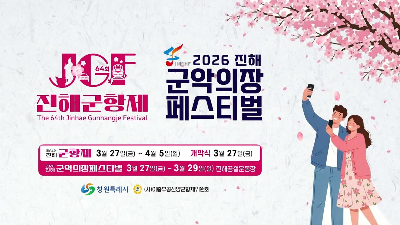 3월 27일 제64회 진해군항제가 개막합니다. 36만 그루의 왕벚나무와 군악의장페스티벌, 군부대 개방 등 특별한 체험이 가득합니다. 여좌천과 경화역의 꽃비 속에서 낭만적인 봄을 만끽하세요..