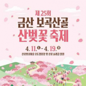 국내 최대 산벚꽃 군락지인 금산군 보곡산골에서 ‘제25회 산벚꽃 축제’가 4월 11일부터 19일까지 개최됩니다. 걷기대회와 산골 체험 등 자연 친화적 프로그램이 운영됩니다...