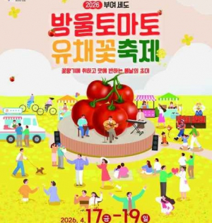‘2026 부여세도 방울토마토 유채꽃 축제’가 4월 17일부터 19일까지 부여군 세도면 황산대교 일원에서 개최된다. 방울토마토 수확 체험과 유채꽃 경관, KBS 전국노래자랑 등 다채로운 프로그램이 마련되..