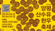 노란 산수유와 지역 한우 산업을 함께 담은 제23회 양평산수유한우축제가 4월 4일부터 5일까지 개군면 일대에서 공연·체험·먹거리와 함께 열린다..