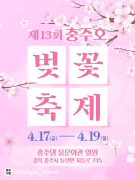충주댐 물문화관 일원에서 제13회 충주호 벚꽃축제가 4월 17일부터 19일까지 열린다. 겹벚꽃 경관과 공연, 체험, 걷기대회, 셔틀버스 운영이 ..