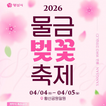 [양산=컬처GB신문] 경남 양산시의 대표 봄 행사인 ‘2026 물금벚꽃축제’가 4월 4일부터 5일까지 이틀간 황산공원 일원에서 열린다. 축제는 양산시 황산공원 문주광장과 중부광장을 중심으로 운영되며, 봄철 낙동강 변 벚꽃 경관과 공연, 이동 편의 프로그램을 결합한 도심형 봄 축제로 마련된다.이번 축제는 벚꽃 개화 시기에 맞춰 시민과 방문객이 황산공원의 벚꽃길을 즐길 수 있도록 구성됐다. 행사장은 낙동강 변 산책 동선과 공연 공간이 어우러진 형태로 운영되며, 황산공원 내 중부광장과 문주광장 일대가 주요 무대가 된다. 자료에 따르면 2026 물금벚꽃축제는 4월 4일 토요일부터 5일 일요일까지 진행된다.개막일인 4일에는 개막식 축하공연이 예정돼 있으며, 포스터에는 김용빈, 양지원, 유민지, 별사랑이 출연진으로 안내됐다. 폐막일인 5일에는 하하&스컬, 황가람, 최전설, G.N.B 피드백 댄스 컴피티션 키즈&유스 무대가 예정돼 있어 양일 모두 공연 중심의 프로그램이 이어질 전망이다.축제의 현장 체험 요소로는 황산공원 일대 벚꽃길 산책과 함께 전기카트 ‘벚꽃타요’ 운영이 포함됐다. 이에 따라 관람객은 공원 내 주요 공간을 더욱 편하게 이동하며 봄 풍경을 즐길 수 있을 것으로 보인다. 양산시는 이번 행사를 통해 황산공원의 계절 경관과 문화 행사를 함께 체험하는 지역 대표 봄 축제 이미지를 강화할 계획이다.
