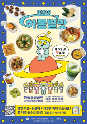 [하동=컬처GB신문] 2025년 11월 7일부터 9일까지 3일간, 경남 하동송림공원 일원에서 지역 대표 미식축제 ‘2025 하동별맛축제’가 열린다. 별빛과 함께 즐기는 이번 축제는 ‘별 5성급 맛 축제’를 슬로건으로 내세워 하동 고유의 식재료와 셰프들의 창의요리가 어우러지는 오감만족 경험을 선사한다.