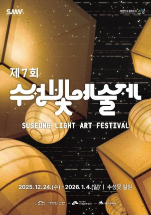 이 밖에도 축제 기간 동안 관람객들이 직접 참여할 수 있는 다채로운 프로그램이 운영된다. ▲새해 소망을 담는 소원지 작성 ▲전문 해설사와 함께하는 도슨트 프로그램 ▲빛과 예술을 체험할 수 있는 미디어 아트존 등이 마련된다. 아울러 ‘들안아트몰 플리마켓’과 체험 부스도 운영되어, 가족이나 연인과 함께 방문한 시민들에게 풍성한 즐길 거리를 제공한다.수성구 관계자는 “매년 새로운 주제와 감동으로 찾아오는 수성빛예술제가 올해는 ‘생명’을 품은 빛으로 시민들에게 희망의 메시지를 전하려 한다”라며, “한 해를 마무리하고 희망찬 새해를 맞이하는 이 특별한 공간에서 소중한 사람들과 따뜻한 추억을 만드시길 바란다”라고 전했다.한편, 제7회 수성빛예술제는 수성구 관내 초·중·고등학교와 전문 작가들이 대거 참여하며, 대구광역시 수성구와 수성문화재단이 주최·주관하고 대구광역시가 후원한다.조상배 기자 chobs5078@naver.com