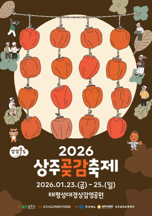 [상주=컬처GB신문] 상주시는 지역 대표 브랜드인 상주 곶감의 시장 경쟁력을 확보하고 겨울철 관광 콘텐츠의 실무적 운영 체계를 점검하기 위해 오는 1월 23일부터 25일까지 사흘간 태평성대경상감영공원 일원에서 2026 상주곶감축제를 개최한다.