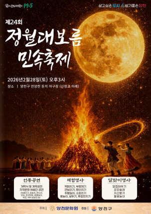 [서울 양천=컬처GB신문] 도심 속 거대한 불꽃이 밤하늘을 수놓으며, 잊혀가는 우리네 전통 세시풍속이 양천구 안양천에서 화려하게 부활한다. 양천문화원은 오는 2월 28일(토) 오후 3시, 양천구 안양천 둔치 야구장(신정교 아래)에서 ‘제24회 정월대보름 민속축제’를 개최한다고 밝혔다. 이번 축제는 주민들이 한자리에 모여 액운을 물리치고 새해의 건강과 복을 기원하는 화합의 장으로 꾸며진다. ■ 눈과 귀가 즐거운 전통의 향연, `오감 만족` 현장올해로 24회째를 맞이한 이번 축제는 더욱 입체적인 프로그램으로 시민들을 맞이한다. 행사의 포문을 여는 전통 공연은 단순한 관람을 넘어 예술적 감동을 선사한다. 아슬아슬한 외줄타기를 시작으로 신명 나는 풍물놀이, 현대적 감각이 더해진 국악 비보이 공연까지 세대를 아우르는 무대가 펼쳐질 예정이다.   체험존에서는 가족 단위 방문객을 위한 `추억 만들기`가 한창일 것으로 보인다. 아이들은 직접 연날리기와 팽이치기를 배우며 전통놀이의 재미에 빠지고, 어른들은 떡메치기와 부럼깨기를 통해 유년 시절의 향수를 만끽할 수 있다. 특히 직접 쓴 소원지를 달집에 매는 `소원 쓰기`는 축제의 의미를 더하는 핵심 순서다. ■ 달빛 아래 하나 되는 강강술래와 불꽃의 함성축제의 하이라이트는 해가 질 녘 시작되는 달맞이 행사다. 거대한 나뭇더미를 쌓아 올린 달집을 태우며 액운을 날려 보내는 `달집태우기`는 현장의 열기를 정점으로 끌어올린다. 타오르는 불꽃 주위로 주민들이 손에 손을 잡고 도는 강강술래와 지신밟기는 공동체 의식을 다지는 상징적 장면이 될 전망이다. 행사의 대미는 밤하늘을 수놓는 화려한 불꽃놀이가 장식한다. 양천문화원 관계자는 "정월대보름 축제는 단순히 즐기는 행사를 넘어, 이웃 간의 벽을 허물고 서로의 안녕을 빌어주는 소중한 문화적 자산"이라며, "철저한 안전 관리 속에서 주민들이 마음껏 전통의 정취를 느낄 수 있도록 준비하겠다"라고 전했다. 독자를 위한 `결정적 팁` (Service)방문 최적 시간: 공연과 체험을 여유롭게 즐기려면 행사 시작 30분 전인 오후 2시 30분까지 도착하는 것을 추천합니다.관람 명당: 달집태우기와 불꽃놀이는 안양천 제방 위 산책로에서 내려다볼 때 가장 탁 트인 시야를 확보할 수 있습니다.준비물: 야외 둔치 특성상 강바람이 차가울 수 있으니, 핫팩과 담요를 챙기시면 더욱 따뜻한 축제 관람이 가능합니다.컬처GB신문은 단순한 소식 전달을 넘어, 문화 현장의 기획 구조와 실무적 운영 방식을 세밀하게 기록함으로써 지역 문화 자산의 기초 자료를 보존하고 그 가치를 확산하는 데 목적을 둡니다.
